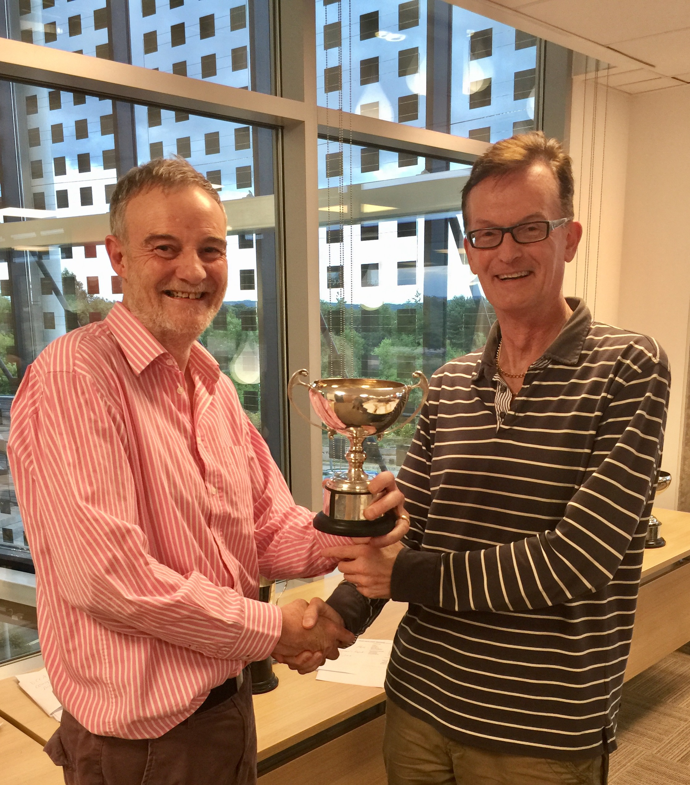 Steve being presented the Ralph Newman (Rapidplay) cup 2018.