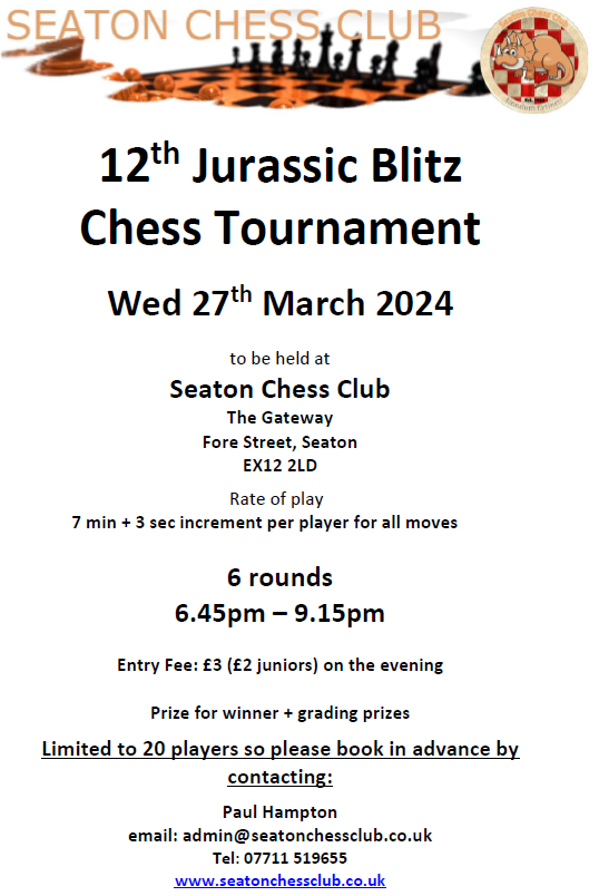 The 12th Jurassic Blitz took place on the 27th March 2024 with a field of 12 coming with some players coming from Exeter and as far as Kingsbridge!