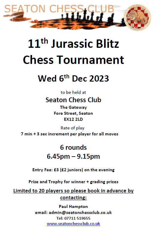 Before then of course is the 1st Jurassic Rapidplay on 16th September 2023 - so just a reminder that there are still spaces left for that competition. It would be great if we could get as much support for our first foray into running an event so hopefully see you all there!
